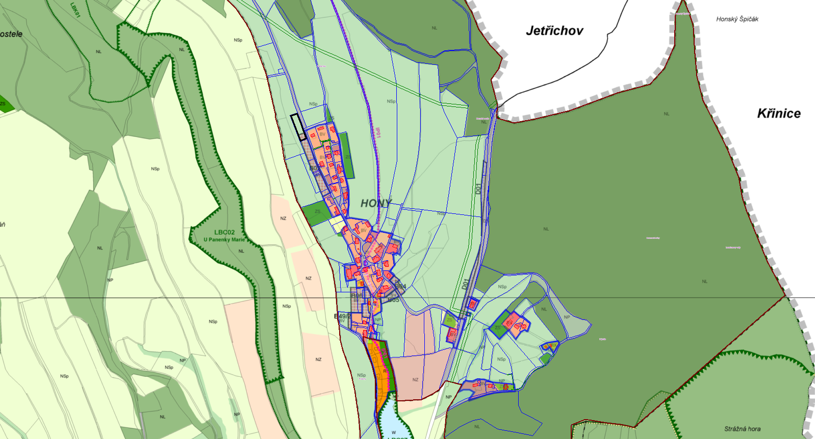 Regulativy výstavby v k. ú. Hony ( bližší informace poskytne odbor výstavby MěÚ Police n. M.)